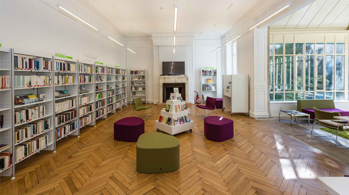Das Institut ist in einem herrschaftlichen Stadtpalais inmitten eines großen Parks untergebracht. Einstige Remisen dienen als Veranstaltungssaal und Unterrichtsräume. Ein früheres Pförtnerhaus beherbergt eine Dienstwohnung. Das Institut wurde von uns saniert, brandschutzertüchtigt und barrierefrei aufgerüstet. Wertvolle Art-Nouveau-Elemente wurden sorgfältig restauriert und wieder zur Geltung gebracht. Der Dachstuhl des Hauptgebäudes musste wegen Baufälligkeit abgerissen und denkmalgerecht erneuert werden. Der Wintergarten wurde energetisch saniert.